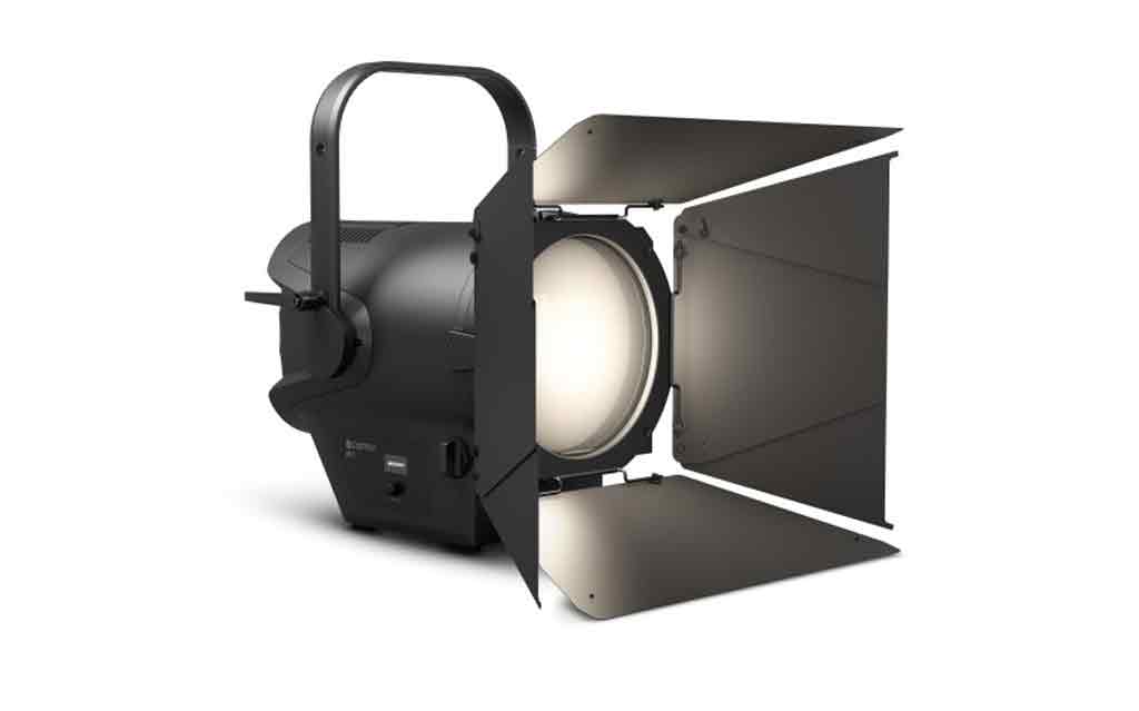 Cameo F4 T es un foco Fresnel LED blanco cálido de 520 W con lente de 250 mm y un flujo luminoso de 29.500 lm, equivalente a los Fresnel convencionales de 2 kW pero con un consumo más eficiente. Su temperatura de color de 3200 K y un CRI de 96 garantizan una reproducción cromática natural y fiel en teatro, cine y televisión. Ofrece un ángulo de zoom de 12° a 40°, 6 modos DMX, función de estrobo, 4 curvas de atenuación de 16 bits y tecnología Quicklight para una orientación rápida y precisa. Su refrigeración con caloducto y ventilador silencioso asegura un funcionamiento óptimo, mientras que la carcasa de aluminio robusta y la pantalla OLED facilitan el uso profesional.