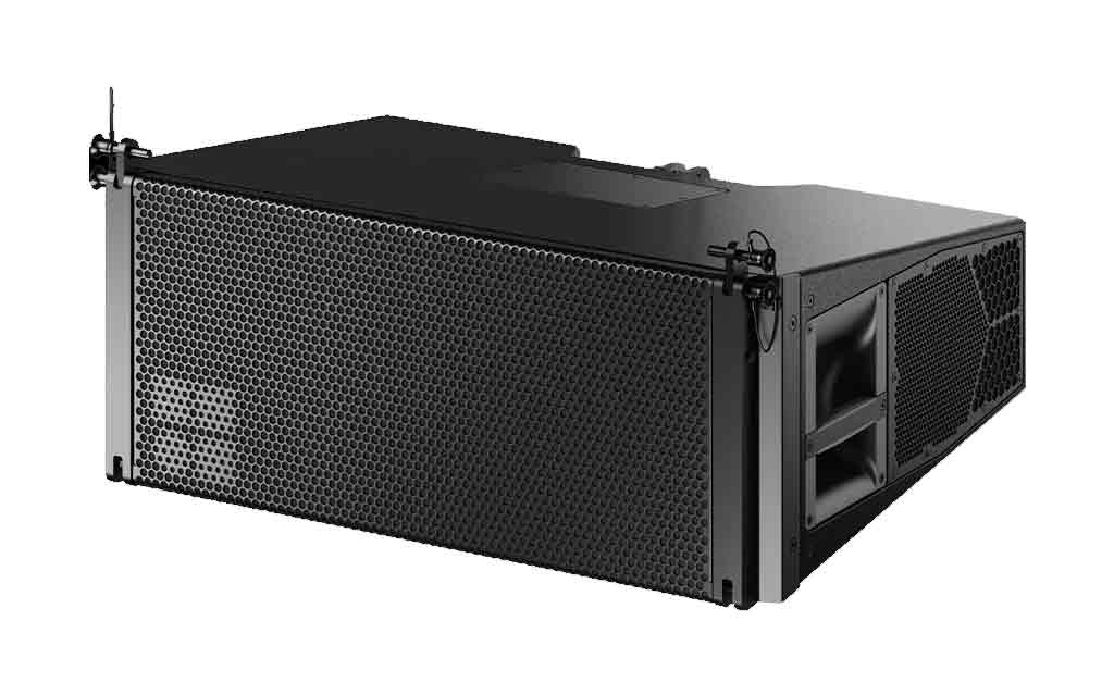 La caja integra dos motores LF de neodimio de 8” orientados al frente, dos motores LF de 6,5” orientados a los lados, un motor MF de 6,5” con trompeta y dos motores HF de compresión de 1” con bobinas de 2”. Esta disposición patentada mantiene una directividad uniforme desde 60 Hz hasta más de 18 kHz, incluso en arreglos compactos donde ArrayProcessing no es necesario.