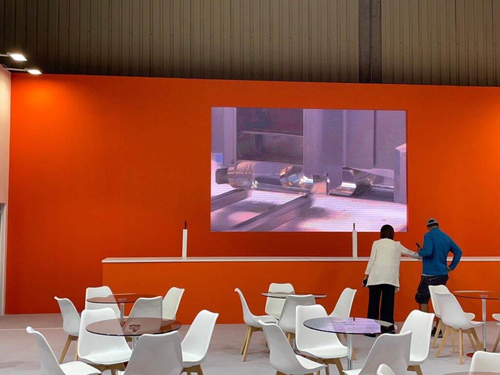 Nuestro equipo se encargó de la instalación de una pantalla LED de gran formato, que se convirtió en el elemento central del espacio expositivo. Gracias a su alta resolución y brillo, la pantalla permitió mostrar contenidos de marca, vídeos de producto y mensajes clave de forma clara, atractiva y dinámica durante toda la feria.