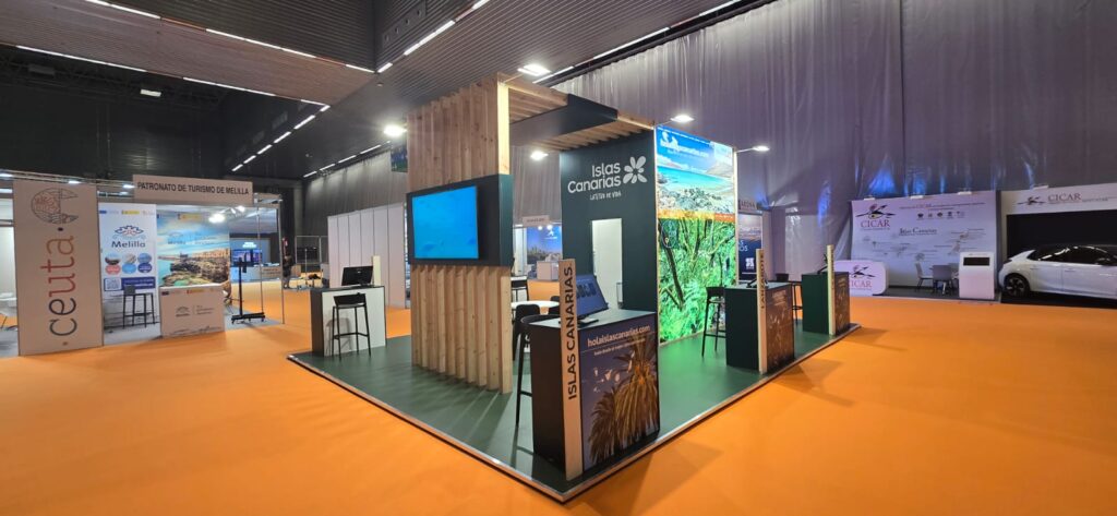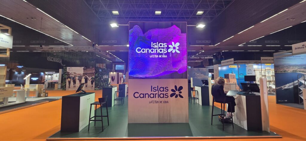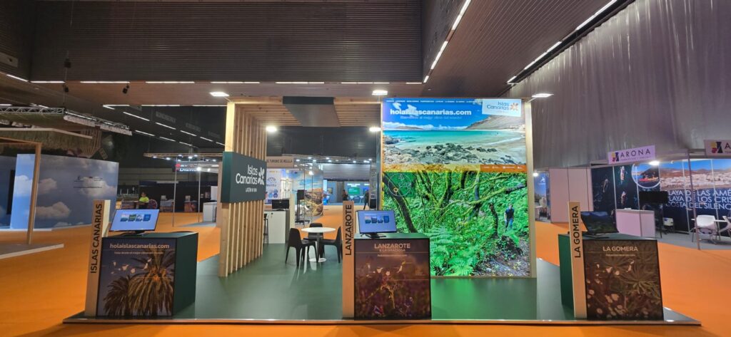 Nuestro equipo se encargó de la instalación de varias pantallas LED como parte del stand expositor de Islas Canarias, creando soportes visuales impactantes y dinámicos para reforzar la comunicación de cada destino y empresa participante de la mano de Tars Design.