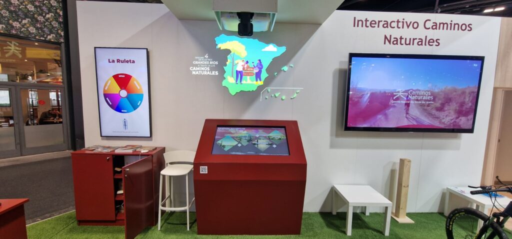 Instalamos pantallas LED, pantallas táctiles interactivas y sistemas de sonido e iluminación adaptados al diseño del stand. También realizamos en directo los distintos actos y presentaciones, que se retransmitieron en streaming desde la feria. De esta manera, el mensaje de Caminos Naturales llegó mucho más allá de los asistentes presentes.