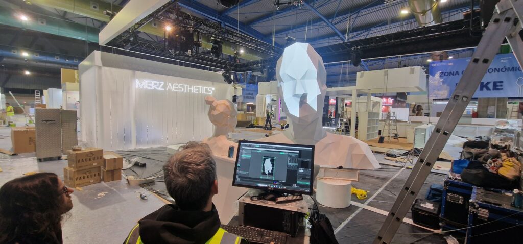 Para lograrlo, utilizamos un video mapping proyectado sobre una figura tridimensional. De esta forma, creamos una experiencia visual envolvente e interactiva. Así, el espectador puede conectarse de manera única con los valores de Merz Pharma. Cada detalle de luz, movimiento y color fue cuidadosamente diseñado. Además, refleja la excelencia científica, la innovación tecnológica y la sensibilidad estética de sus tratamientos y productos.